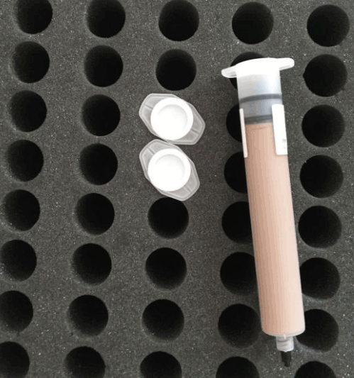 導電膠水主要由樹脂基體、導電粒子和分散添加劑、助劑等組成.市場上使用的導電膠水大都是填料型。填料型導電膠水的樹脂基體,原則上講,可以采用各種膠勃劑類型的樹脂基體,常用的一般有熱固性膠黏劑如環(huán)氧樹脂、有機硅樹脂、聚酰亞胺樹脂、酚醛樹脂、聚氨酯、丙烯酸樹脂等膠黏劑體系.這些膠黏劑在固化后形成了導電膠水的分子骨架結構,提供了力學性能和粘接性能保障,并使導電填料粒子形成通道.由于環(huán)氧樹脂可以在室溫或低于150℃固化,并且具有豐富的配方可設計性能,環(huán)氧樹脂基導電膠水占主導地位。